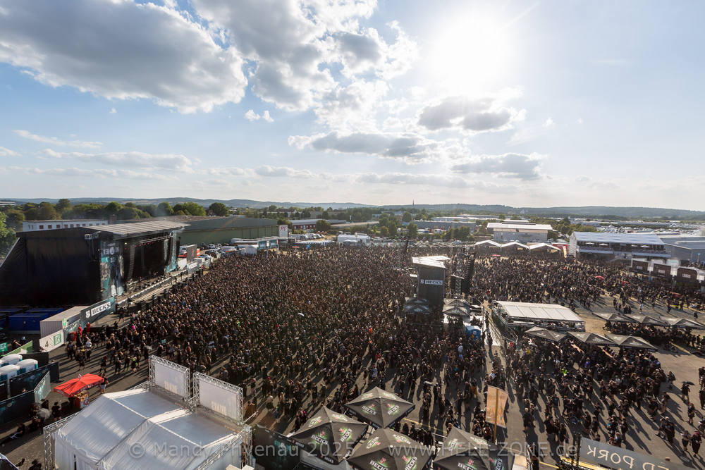 Ein spezielles Set bringen auch Subway to Sally zum Festivaljubiläum mit. Sie spielen das aktuelle „Nord Nord Ost“-Album in voller Länger auf der Mainstage! Aus allen Jahren der Bandgeschichte ist etwas dabei. „Eisblumen“ und „Schneekönigin“, genau wie der Song „Sieben“, der absolut alles zum Beben bringt. Souverän leitete Eric Fish durchs Set, während die Sonne langsam untergeht.