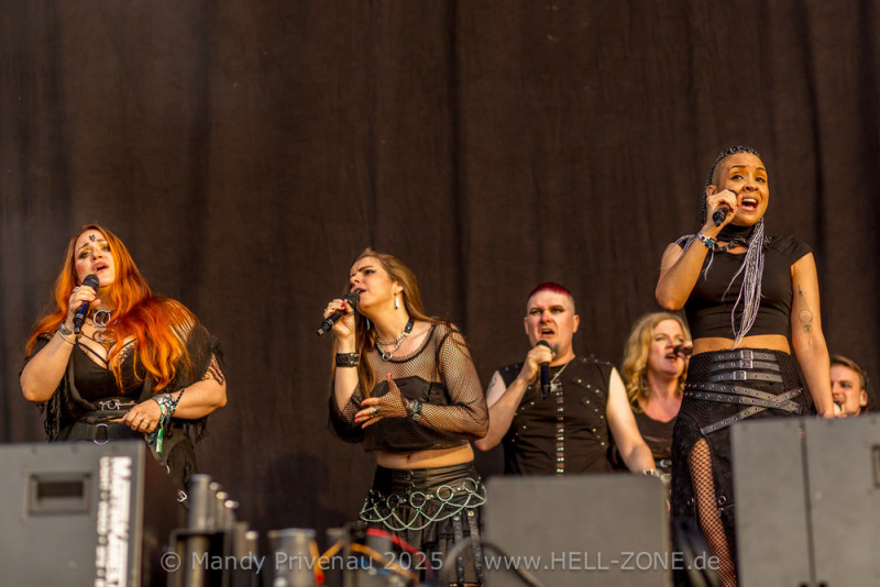 Am Ende des Sets folgte der gemeinsam mit Stimmgewalt performte Song „Moon Struck“. Als Closing des Auftritts performen Stimmgewalt, LOTL und Gastsänger Daniel Schulz (Oomph) gemeinsam die Mera Luna Hymne „Ordo Mera Luna“ und sorgten für Gänsehaut. Dieses Finale wurde durch ein Feuerwerk zum letzten Refrain hinter der Bühne unvergesslich gemacht – ein kraftvoller Abschluss eines energiegeladenen Auftritts.